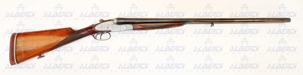 Escopeta paralela de dos disparadores, fabricada en el año 1960, expulsora, válvulas de escape de gases, doble seguro y extractor de doble radio.