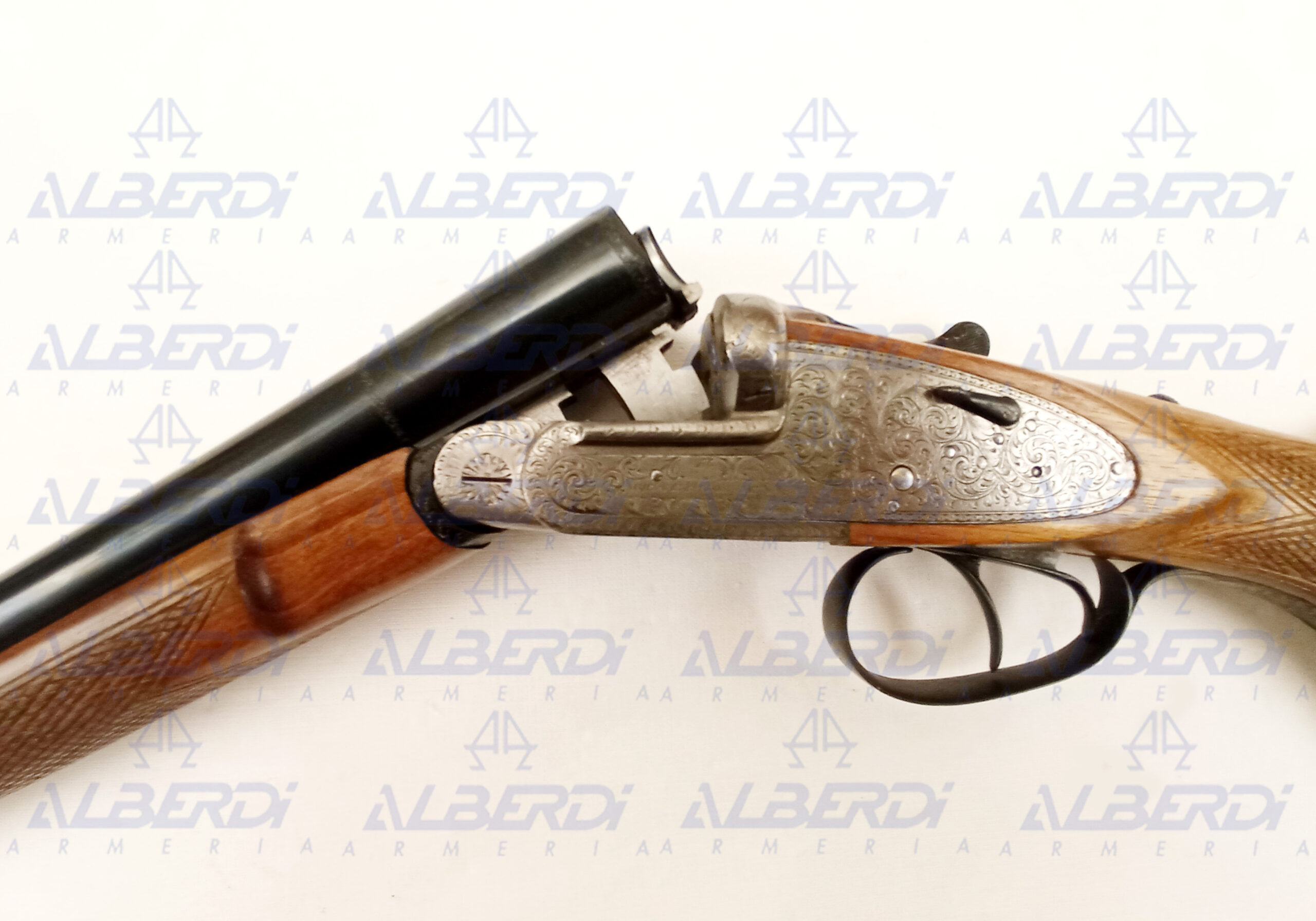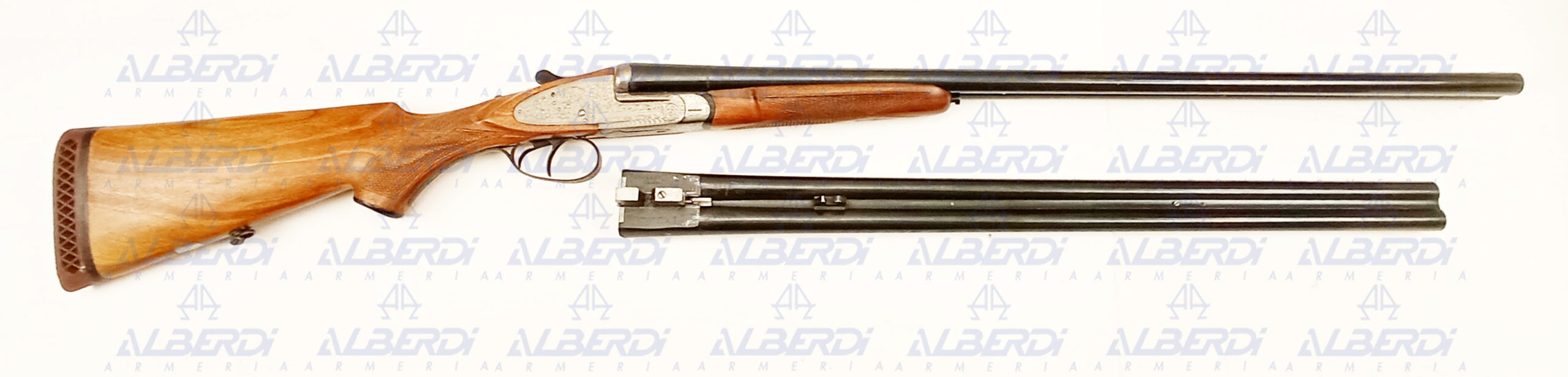 Escopeta paralela fabricada en el año 1931 y reconstruida en el año (N2) 1995, por IRU, de pletina larga, con dos disparadores, expulsora, desmontable a mano, con válvulas de escape de gases.
