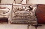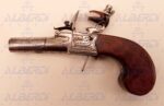Pistola de bolsillo inglesa, fabricada hacia el año 1800, sistema de bala forzada.